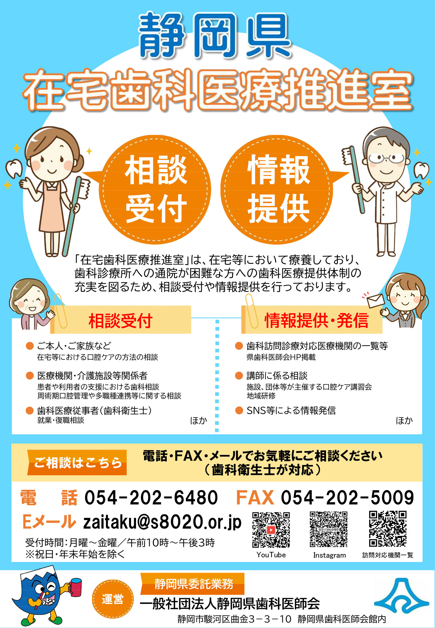 静岡県歯科医師会では静岡県の委託を受け、「在宅歯科医療推進室」を開設いたしました。