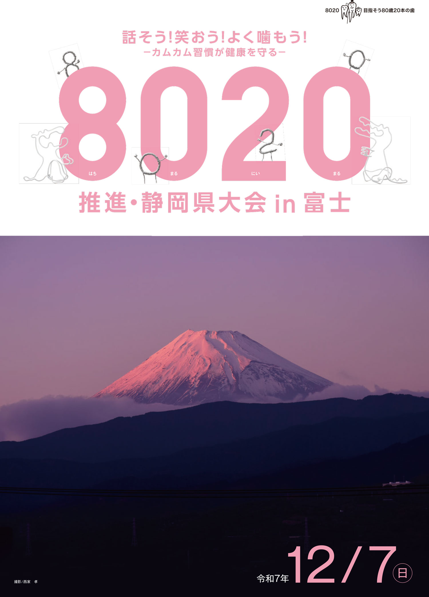 8020推進・静岡県大会 8020推進・静岡県大会in富士 令和7年12月7日 13時00分~ YouTubeライブ配信! 来場参加希望の方はこちらからお申し込みください ポスター・案内ダウンロード ポスター PDF ダウンロード ≫ 案内 PDF ダウンロード ≫ 抄録 PDF ダウンロード ≫